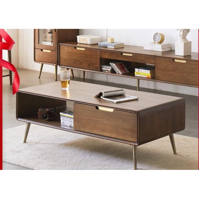 Model: Double Drawer Coffee TableStyle: NordicAssembly requiredColor classification:0.9-meter double-drawing coffee table walnut color (900*500*420mm)1.05-meter double-drawing coffee table walnut color (1050*500*420mm)1.2-meter double-drawing coffee table