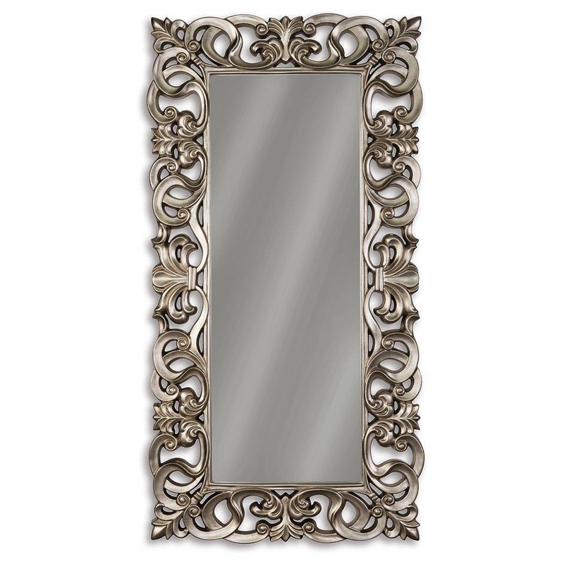 Exquisitely crafted for any glamour queen, this floor mirror is a splendid accent. Antique silver finish brings life to the ornate scroll design. More About This Product Special FeaturesFramedProduct DetailsMirrored glassPoly resin frameD-ring bracket hang