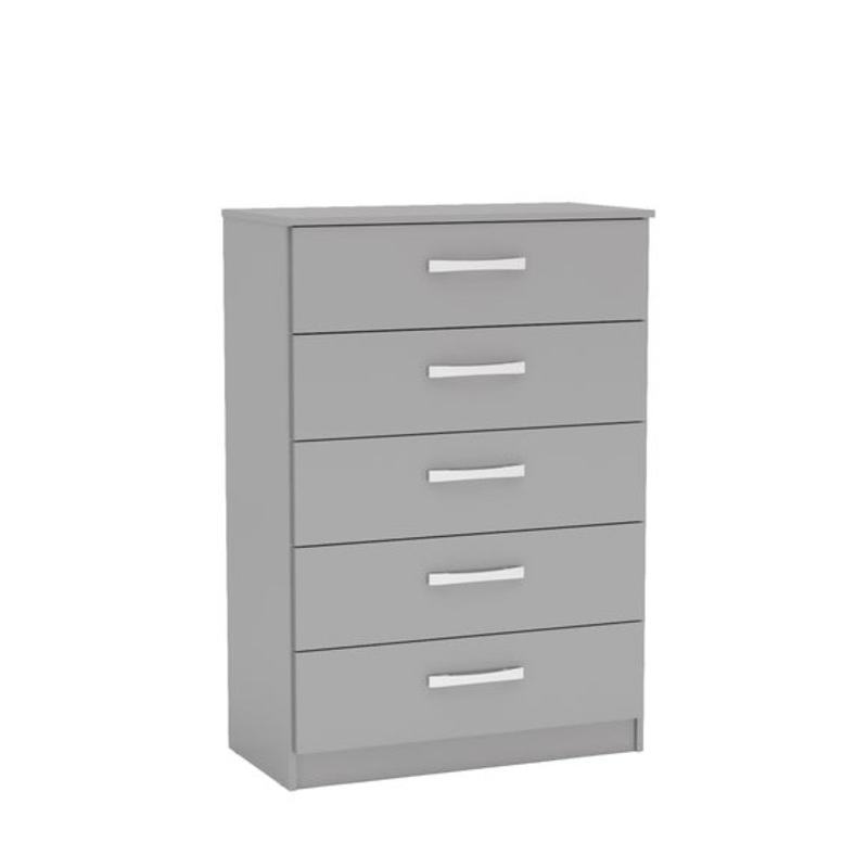 The Lynx 5 drawer chest is a great way of adding storage to your bedroom. This modern collection of bedroom furniture is finished in high gloss black with complimentary silver handles.