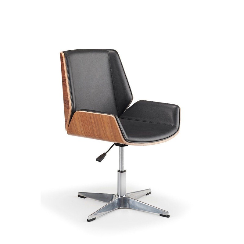 Mabelline Wood Med Back Executive Swivel Boss Design Kruze Inspired Chair With Walnut ShellSuperior Features Include:American Walnut Wooden ShellBlack Leather upholstery With Soft Foam CushioningAluminium Four Legged BaseHeight Adjustable SeatSculptured se