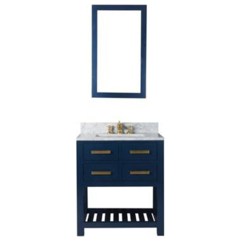 Madalyn 30″ Monarch Blue Bathroom Vanity With Satin Brass Faucet And Mirror – Transitional – Bathroom Vanities And Sink Consoles – by PARMA HOME