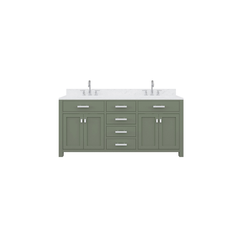 Madison collection by Water Creation, the premier single/double sink bathroom vanity set, will magnify a level of sophistication and classic to any bathroom’s decor. Constructed of solid hardwood and engineered with joinery techniques, this vanity is beautifully designed and built to last. The clean and simplified line can serve as plug-and-play components for contemporary design. Incorporated with nature’s magical Ingredient, this minty fresh color Glacial Green is a gorgeous colorway for creating an aesthetic in your bathroom. Practical and stylish elements include soft-close doors and drawer(s) to keep toiletries and cleansing essentials neatly tucked away. The lustrous Italian Carrara white marble with integrated ceramics rectangular sink all bring confidence to the aesthetic aspect and superior craftsmanship which brings European sensibility to your space.