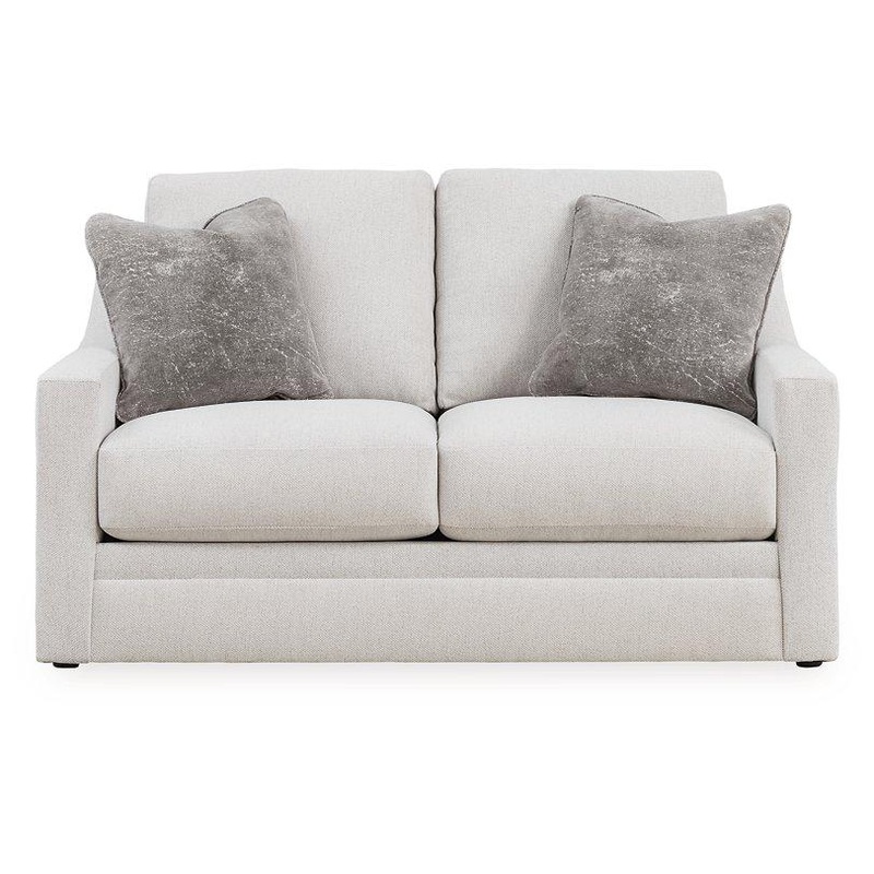 Clean lines and a streamlined silhouette define the architectural attitude of this loveseat. Textured accent pillows in complementary colors add subtle contrast. The loveseat’s plush reversible cushions beckon you to sit down, get comfy and relax completely.