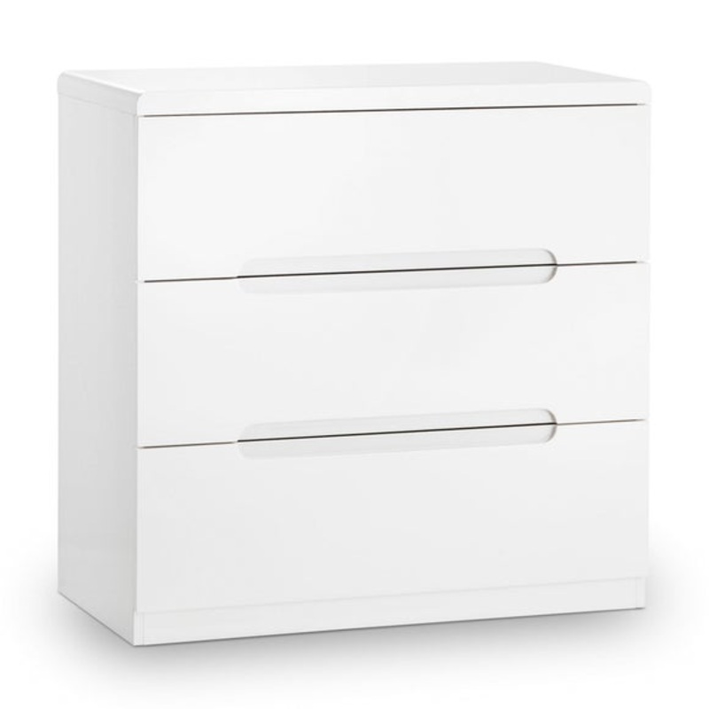 The contemporary chic Manhattan 3 Drawer Chest has a beautifully glossed lacquer white finish ideal for the modern bedroom space. The recessed handles help the clean and refined look of the Manhattan also making it easier to open.Please note, unfortunately