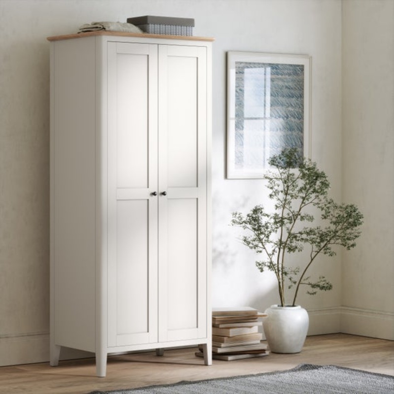 Painted pineSingle hanging railMade from painted pine, this wardrobe effortlessly combines rustic charm with contemporary design. It features two spacious doors that open to reveal a generous hanging rail, perfect for organising and storing your clothes.H