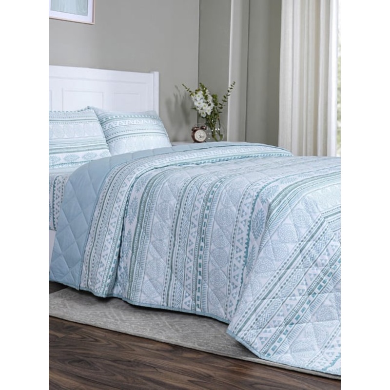 Maspar Allegra Teal Cotton Geometric Double Bed Quilt