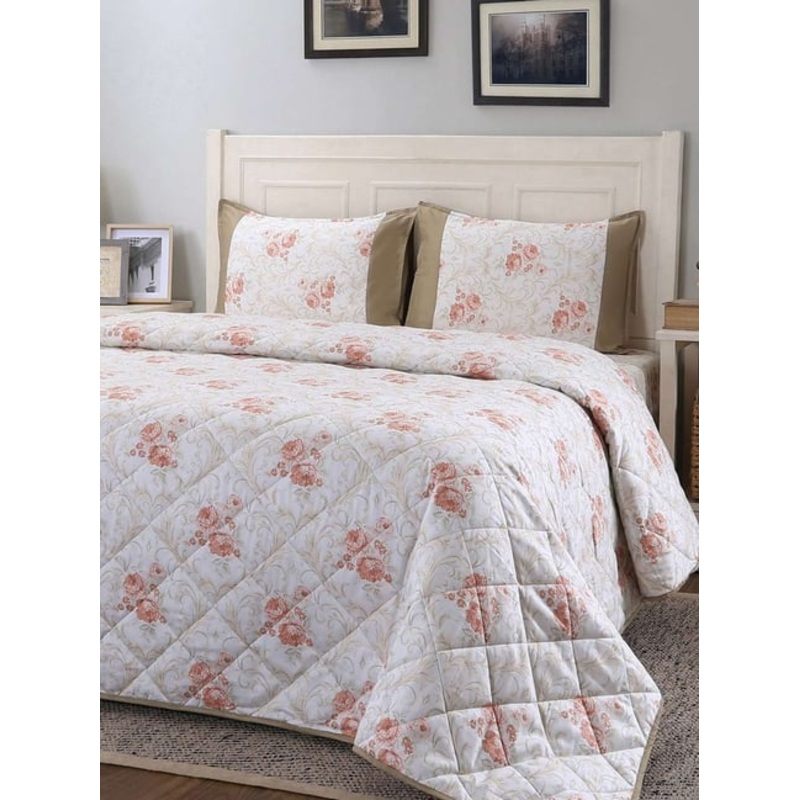 A reversible quilt that can be used from both sides, 100 percent cotton outside and inside is 100 percent polyester filling, the quilt is ideal to use for all-year-round seasons, the filling is wadded using non-woven fabric, ensuring that fiber does not shift or accumulate after multiple washes, skin friendly product, extremely cozy, it looks as good as new for a longer time.