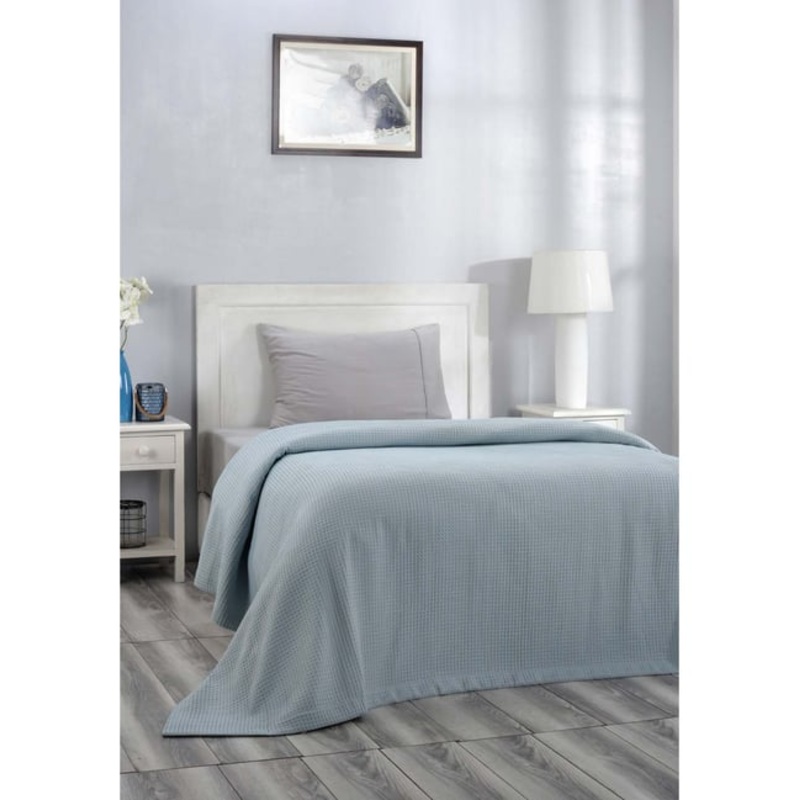 Maspar Waffle Blue Polyester 290 GSM Bed Cover – Set of 1