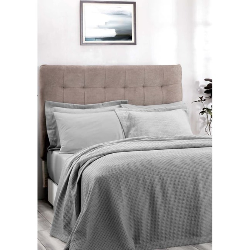 Maspar Waffle Grey Polyester 290 GSM Bed Cover – Set of 1