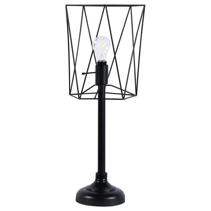 Infuse your space with industrial flair using this bold table lamp, featuring a wire cage shade that highlights a vintage-inspired Edison bulb. The slender torch-style base and tiered round platform create a sleek silhouette. Perfect for desks or accent ta