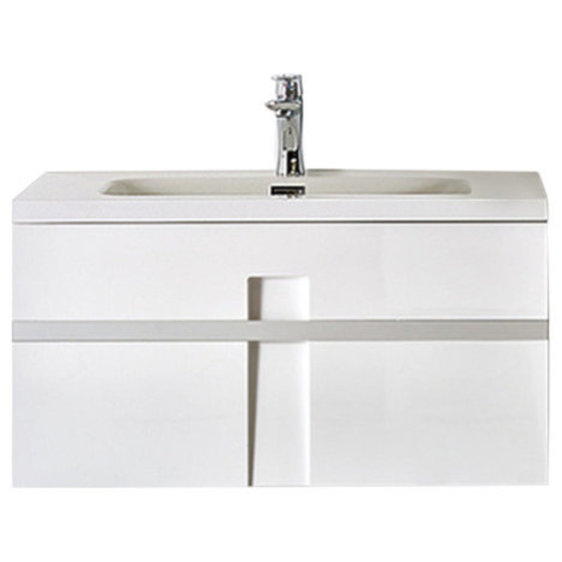 -This contemporary single Mino Glossy White bathroom vanity is designed for people, who seek more than a modern and clear design. -Perfect shaped corners, integrated handle and a specific rectangular shape woodcut in the middle accentuate the aesthetic sty