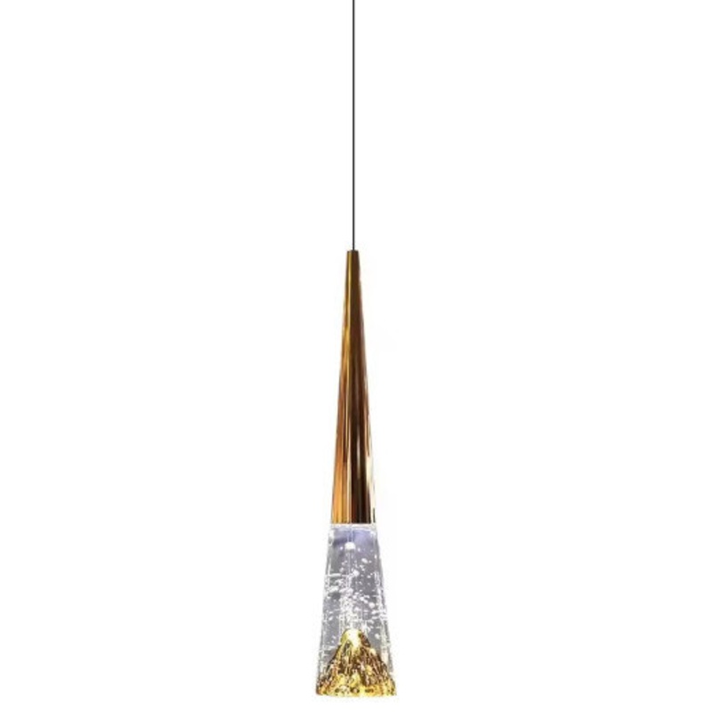 Bring an elegant addition to your indoor spaces with the Crystal Pendant. A stylish contemporary fixture that starts with a smooth disc ceiling mount, it sends down a series of slender cables to suspend conical metal housings at different heights. Details:
