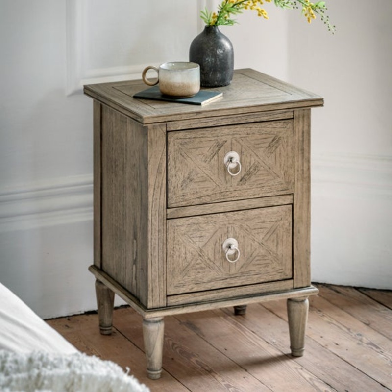 Made from Mindy Ash wood, with a brushed finish to create natural ageingA nod towards French Colonial styleWould equally suit a modern interior2 drawerMatching items available The Modesto 2 Drawer Bedside Table, crafted from Mindy Ash wood brushed to creat