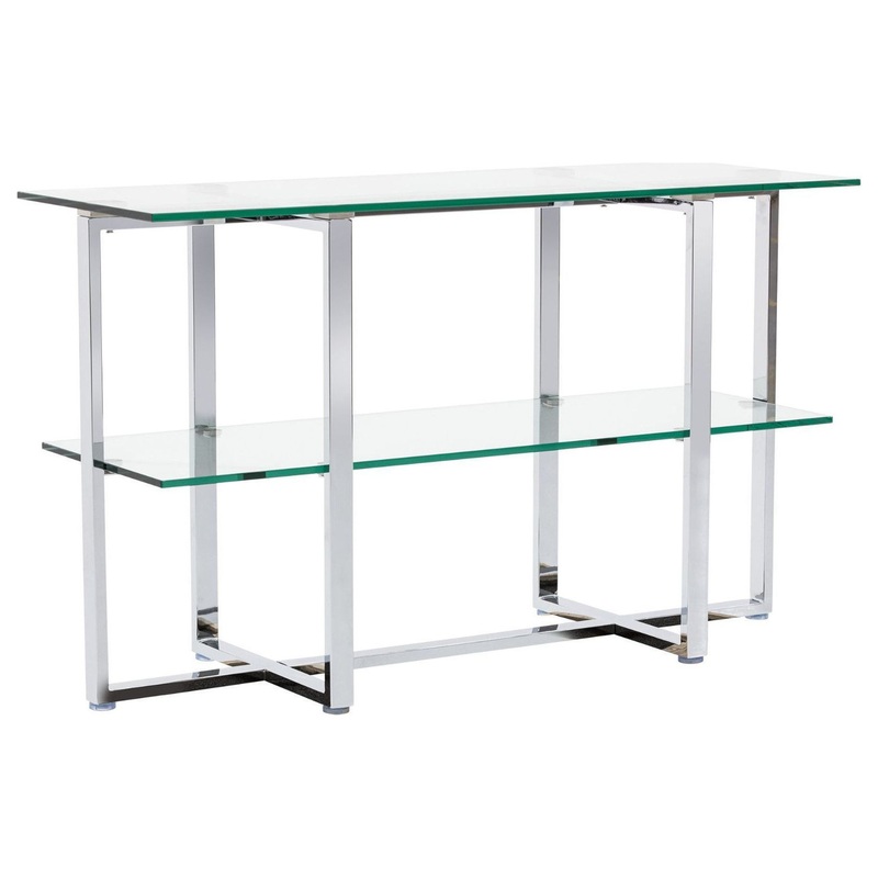 DescriptionThis mix-and-match program offers a flexible selection of dining room pieces designed to add contemporary polish to your dining space. Chrome-plated stainless steel bases offer a striking geometric finish. -Glass sideboard top features chamfered