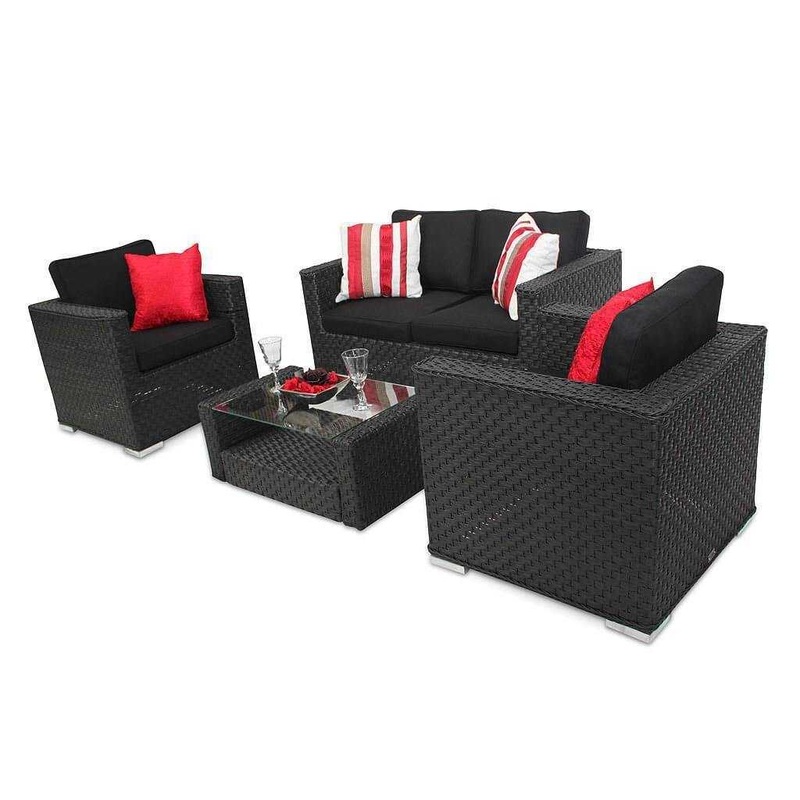 The garden sofa set is available with luxuryrattan armchairs, 2 seater rattan Sofa Sets and a coffee table with a shelf. The Bahiarattan furniturealso features double piped andzipped 250g black cushions which make the set look very stylish, unlike other ve