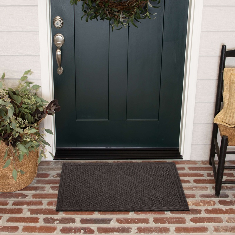Dress your doorways in style with this durable doormat by Mohawk Home. Ideal for outdoor entryways, these resilient doormats offer dependable durability for use in high traffic spaces and areas exposed to the elements. The high/low textured polyester surface design has excellent scraping and wiping properties to help remove dirt, debris, and absorb water from the bottom of shoes before it is tracked indoors. Mohawk Home doormats are backed with 100% recycled rubber, one of the largest and most hazardous types of post-consumer waste, giving the material a new life as a multifunctional entryway accent for any household.