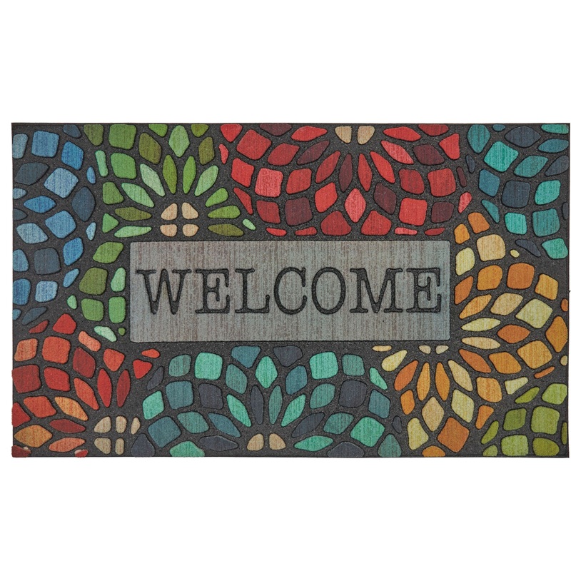 Opulently overdyed blue, green, pink, red, gold, orange and teal mosaic medallions add elegance to any entryway with Mohawk Home’s Stained Glass Floret Welcome Doormat. Ideal for both indoor and outdoor entryways, these resilient doormats offer the dependable durability for use in high traffic spaces and areas exposed to the elements. These doormats are made from 100% recycled rubber with a polyester surface, giving the material a new life as a multifunctional entryway accent for any household. The decorative polyester surface fiber absorbs moisture while the intricate grooves help channel excess water away and scrape dirt from shoes before it is tracked indoors.