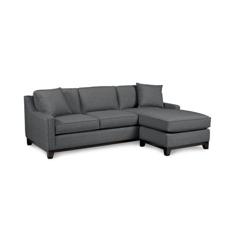 Cool to the touch. From its strikingly textured upholstery to its crisp, tailored lines, this sectional sofa brings impeccable taste to the most elegant or casual spaces. Subtly curved arms add flair to the clean-cut piece, while mocha-finished legs & accent piping are perfect finishing details.
