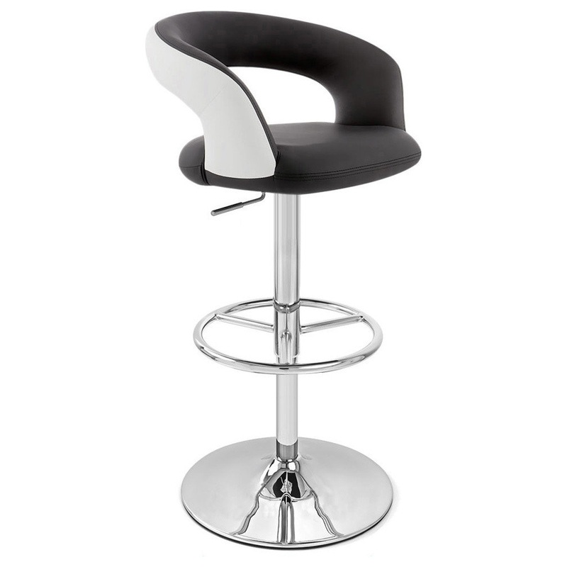 The Monza Bar Stool is an undeniable eye-catcher. The ingenious design features a circular wrap-around mid-height backrest with an opening below that gives the seat more depth for relaxing back in. The extremely comfortable curved seat frame is cushioned with high density and upholstered in premium, soft leatherette. This unique seat is supported by a chrome stem and trumpet base that swivels 360 degrees freely and includes a tubular chrome wrap-around footrest. A gas lift adjusts the height and makes this stool the perfect fit for any countertop or bar height table. The Monza is a universal design that is solidly contemporary but has retro styling cues. Its’ style can enhance any decor, from a modern kitchen to a 1970s breakfast bar. Now you just have to choose between a variety of solid colors or a daring two-tone color scheme! This product is suitable for indoor use only.