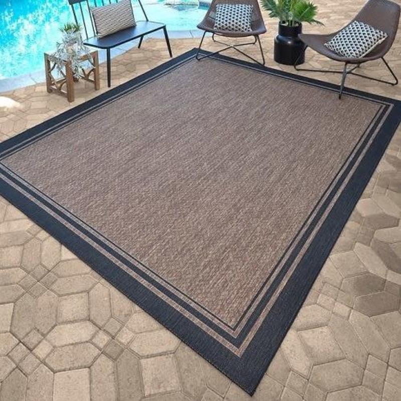 Naples Indoor/outdoor Rug Collection – Ace Border Havanah Black – 7’10” x 10′