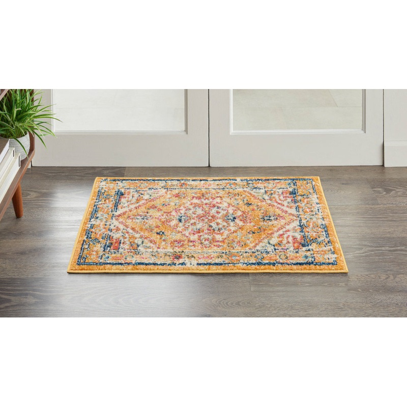 This classic Persian beauty sparkles like a king's ransom in golden tones of yellow on ivory. A rug from the Passion collection, it presents a classic center-medallion floral pattern in a modern palette with overdyed patina. As sumptuous to the touch as it