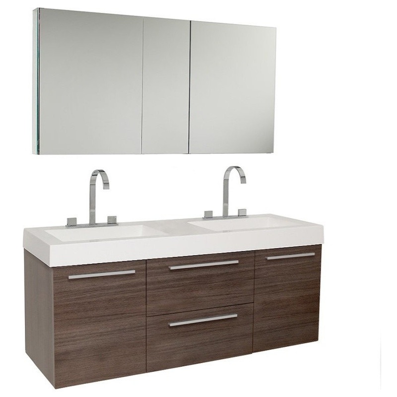There is always great design in simplicity. Double the greatness with this double sink vanity with accompanying medicine cabinet. To ease any storage worries, beautiful mirrored medicine cabinet will satisfy immediate storage needs for two. A beautiful wid