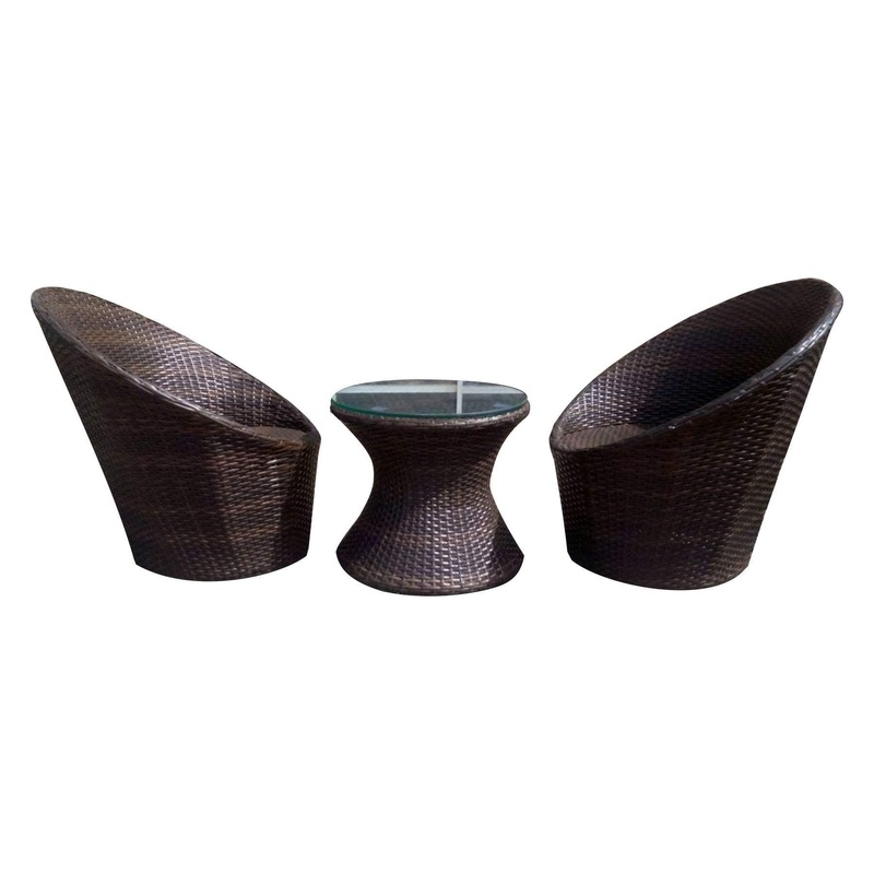 Oval 3-Piece Outdoor Rattan Patio Chair Set