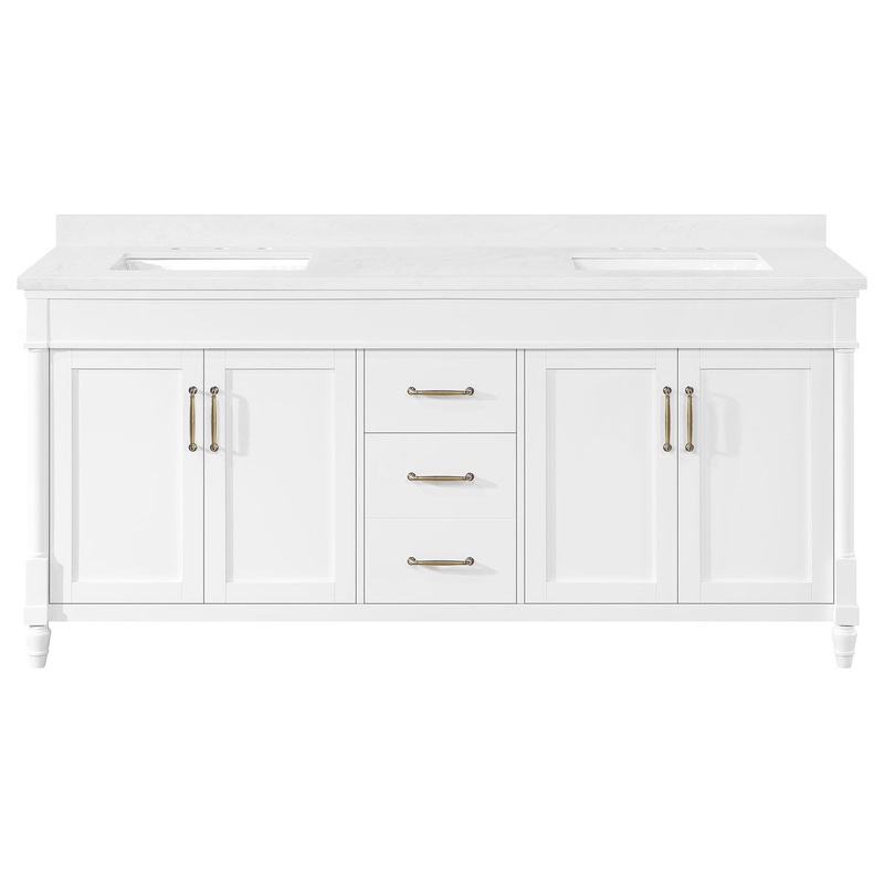 Designed with timeless details like brass hardware, spindle legs and shaker doors, the Salisbury vanity by OVE Decors will give your bathroom a fresh update that will never go out of style. Smartly appointed drawers and a spacious cabinet offer plenty of storage for daily essentials while double sinks enable access to multiple users. With a Pure White finish, shiny engineered marble countertop and two undermount sinks, this vanity is ready to wow you with its ample storage, ease of care and great looks.