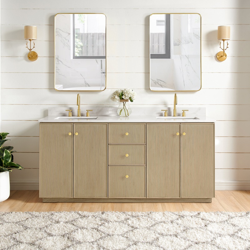 Meticulously designed, our Oza Series Vanity adds a layer of intrigue and artistry to your bathroom, creating a visual centerpiece that sparks compliments and conversation. It boasts a distinctive textured facade contrasted with a crisp, contemporary quartz countertop. Solid wood construction ensures your investment not only looks stunning, but also stands the test of time, gaining more character and charm as the years go by.