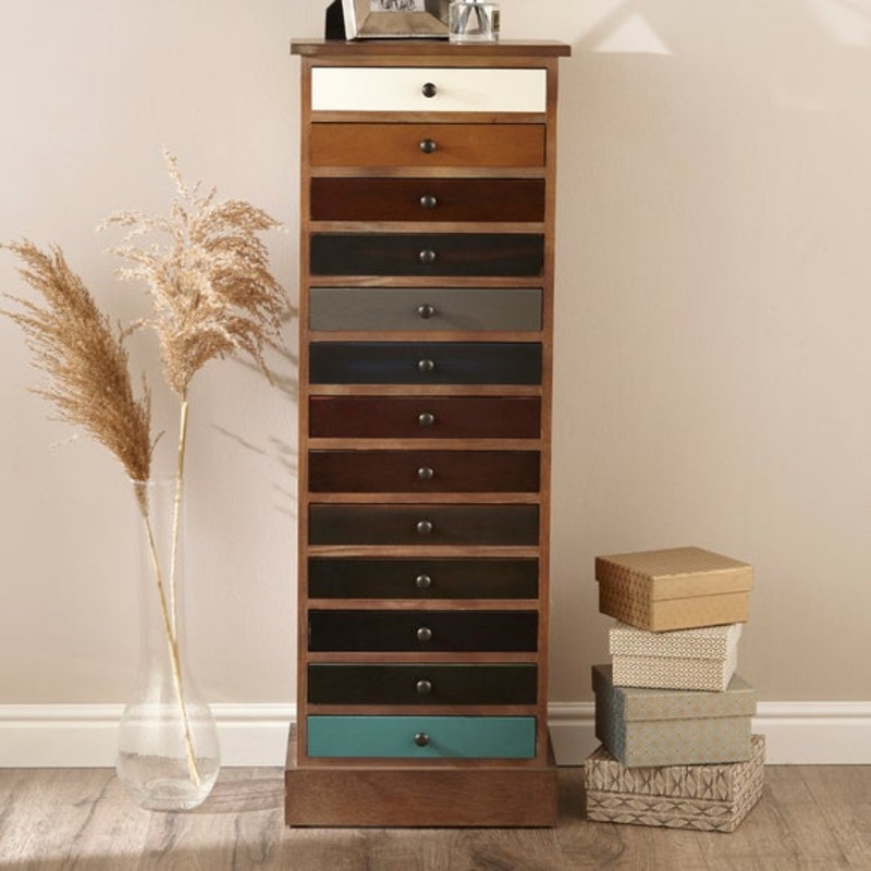 Sturdy mdf and pine frameZinc alloy handlesOn trend colour optionsDo you need storage in a compact living space? This chest of drawers has 13 drawers in a tall but slim structure making it perfect for your smaller home. As the frame is sturdy, the chest of