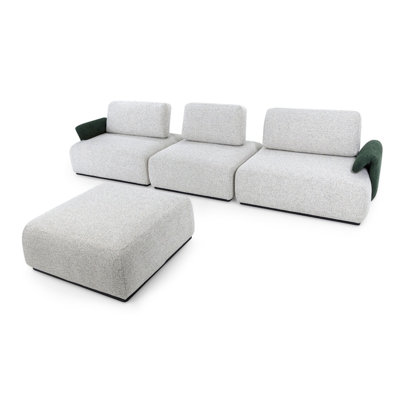 HK857354934PAIPE Sofa 3 Seater with Ottoman in Beige Fabric with Green Detail 170"