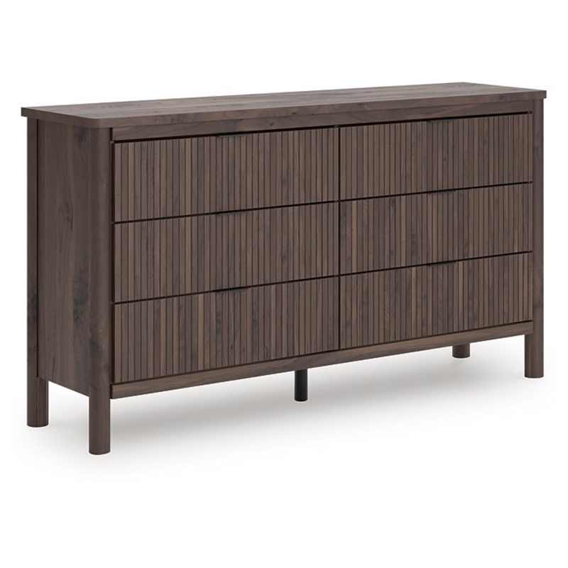 Crafted with both form and function in mind, this dresser brings a dash of retro-cool character to your modern boho aesthetic. Reeded accents add an on-trend touch to its classic silhouette. Warmly welcoming with a rich brown finish, this dresser pairs well with muted hues, earth tones and other neutrals alike. What a refined take on easygoing style.