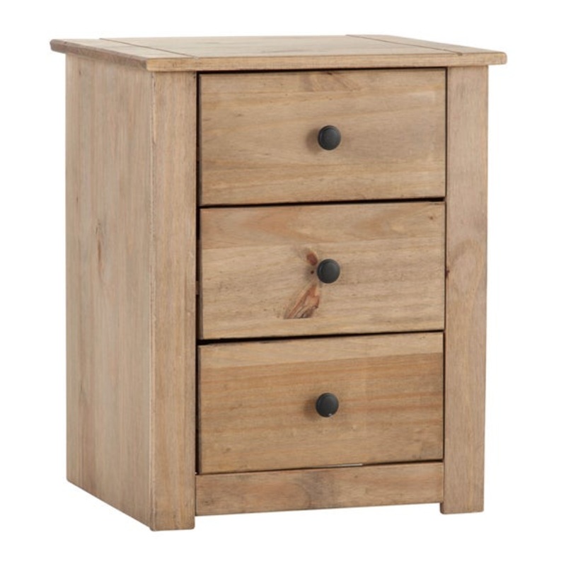 Pine constructionOak wax finishBlack metal handlesThe Panama makes a great addition to your bedroom for that rustic interior look, plus it's great for organising your essentials! The classic wooden look of this bedside works well within country, industrial