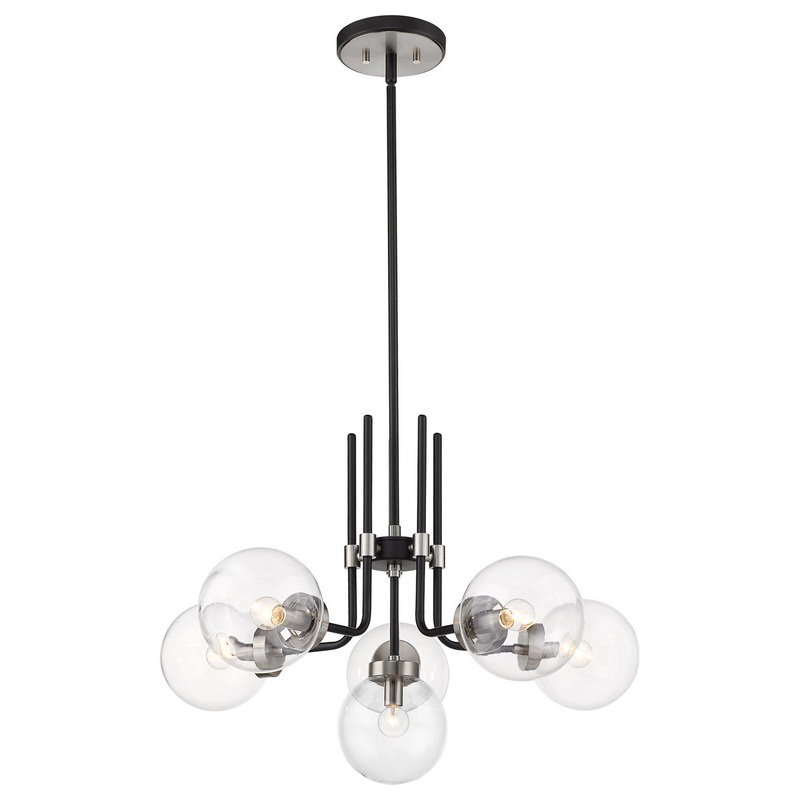 This 6 light Chandelier from the Parsons collection by Z-Lite will enhance your home with a perfect mix of form and function. The features include a Matte Black and Brushed Nickel finish applied by experts. -Style: Modern,Transitional,Mid-Century,Retro -Fi