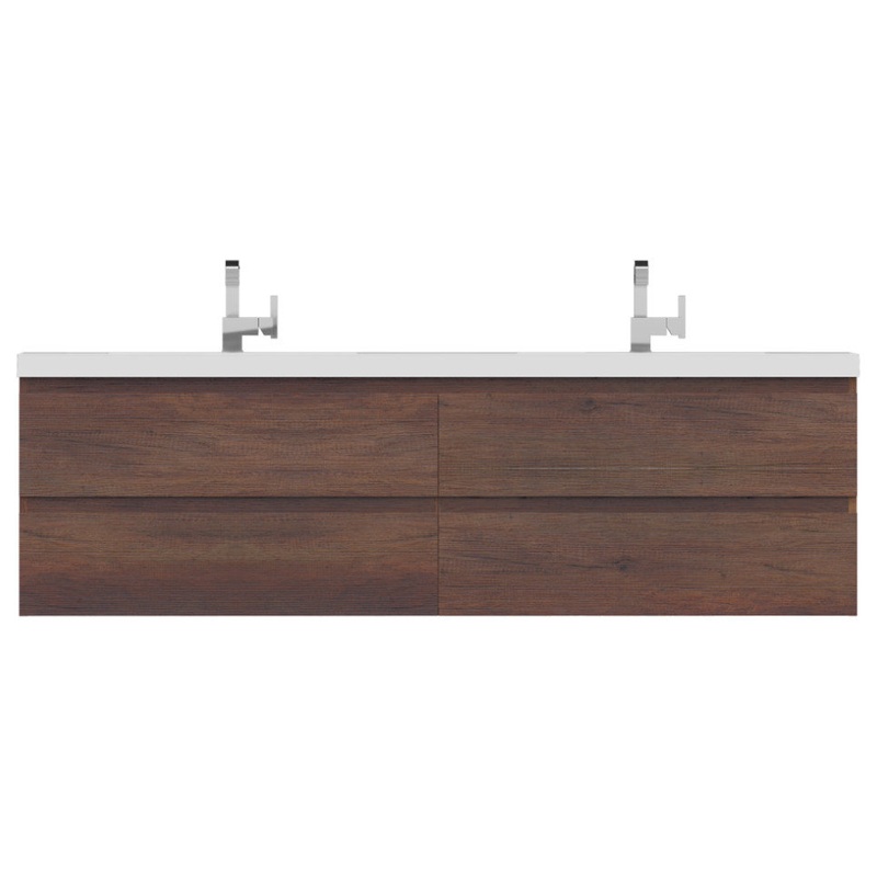 Alya Bath Paterno 72 inch wall mounted double bathroom vanity gives an updated modern look to any bathroom. This hung vanity offers great storage with a smooth soft-closing, fully functional six drawers. The white acrylic sink completes the simple contempo