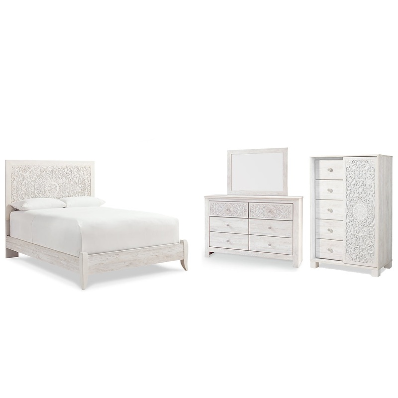 Paxberry Queen Panel Bed with Mirrored Dresser and Chest