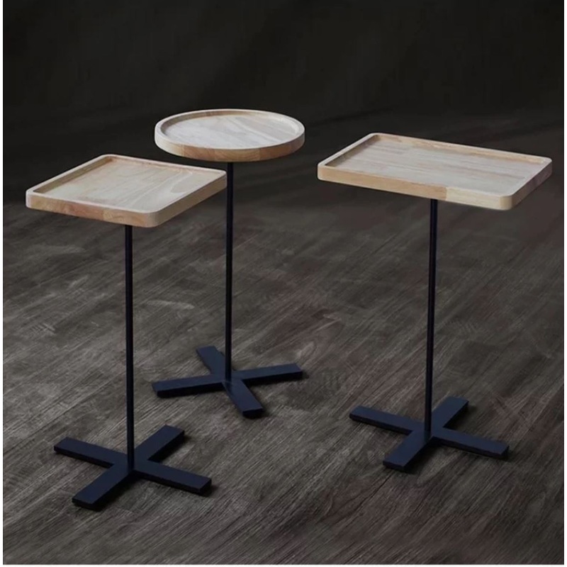 Fill up the empty spaces between your couch and armchairs with this minimal designer piece. Combining raw wood with a metal stand, this design is sure to add to the aesthetics of the home. Dimensions (cm): 25LW x 55H Designs: Round Square Rectangle