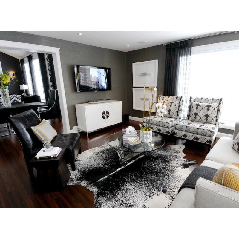 Embolden your floors with the Pergamino Black Cowhide Rug. This authentic leather hair-on-hide piece boasts a unique, asymmetrical black-and-white sequence that adds dimension and texture to your room’s look. And because of the nature of real cowhide, you can rest assured knowing your design is truly one of a kind. The Pergamino Black is versatile enough to be used with an array of different styles, but we think it looks best when paired with urban, rustic or eclectic pieces.