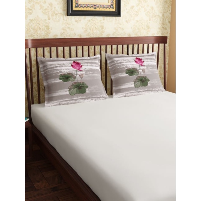 Petal Home Lotus Floral Beige 300 TC Cotton King Sized Pillow Covers – Set of 2