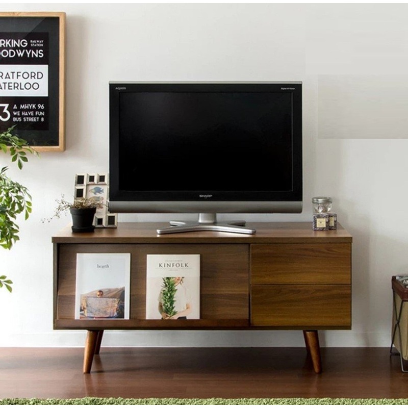 A unique design that functions as both a tv cabinet and display shelf, this compact console comes with a pull up door which converts into a stand for magazines and books. Dimensions (cm): 120L x 43W x 58HMaterials:Manufactured woodWalnut veneer
