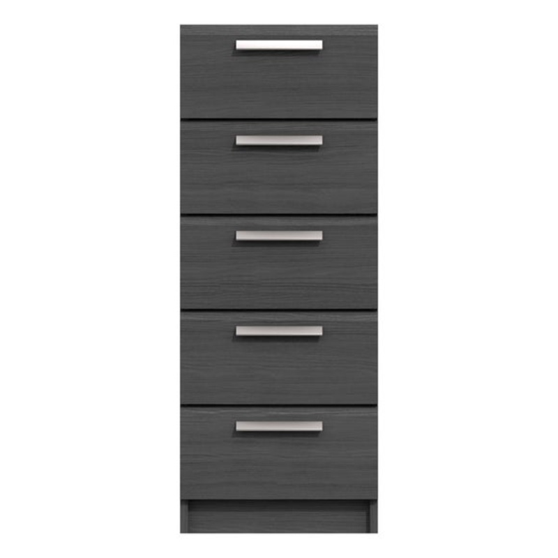 The Piper 5 Tall Chest of Drawers offers a contemporary styling that would make a great addition to any home. The Piper boasts a realistic wood grain effect finish, coupled with stylish designer metal handles to accentuate the distinctive 45 degree profile