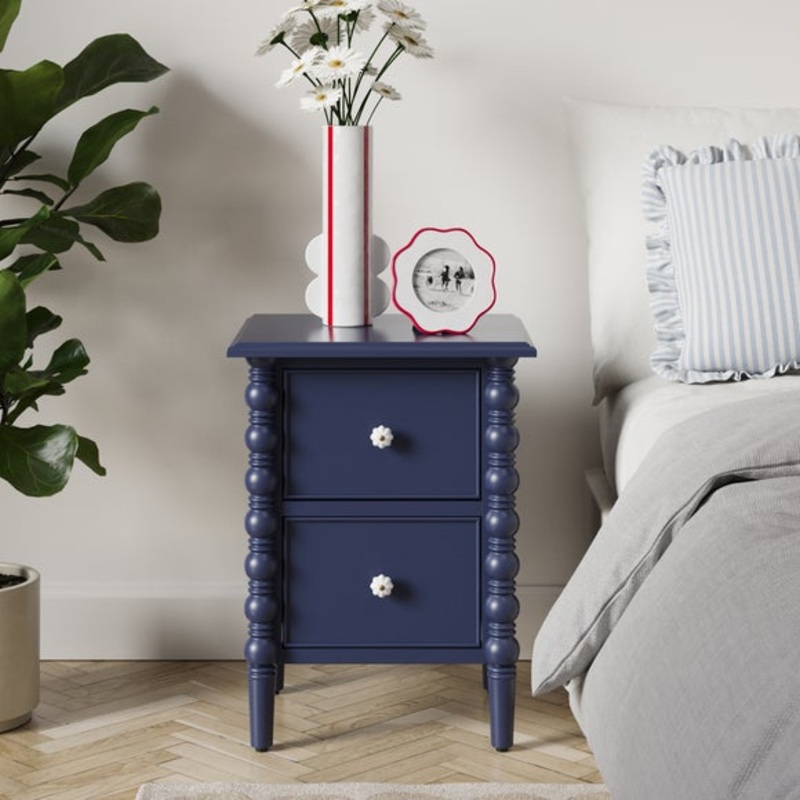 Dunelm Exclusive - Designed and Developed by Dunelm2 drawer bedside tableNavy painted finishCeramic handlesWooden constructionEquipped with two spacious drawers, this bedside table offers ample storage for your night-time essentials. Keep your books, eyegl