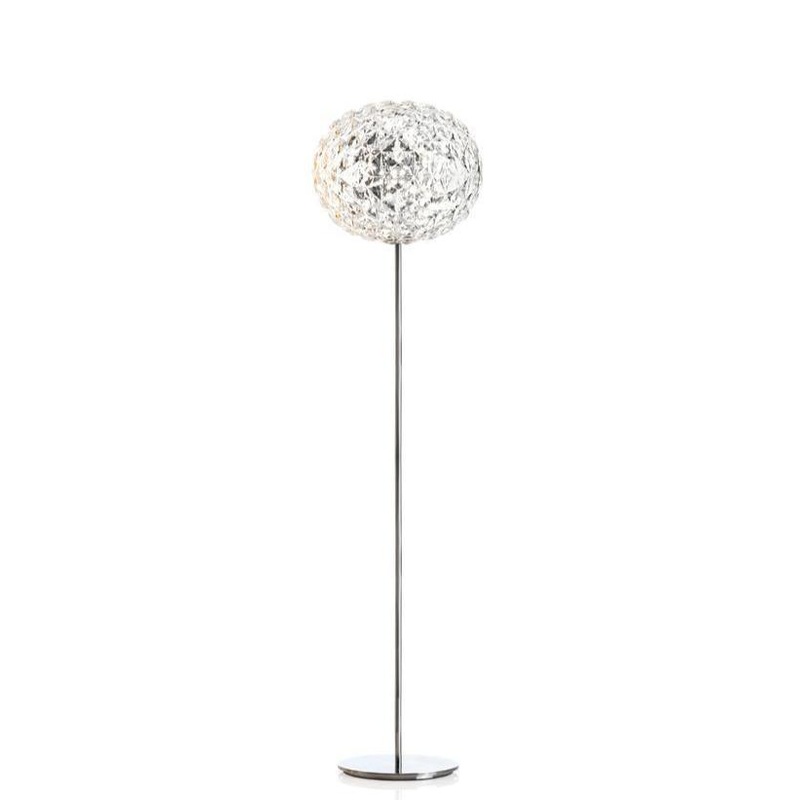 The floor lamp Planet, designed by the Japanese designer Tokujin Yoshioka for the Italian manufacturer Kartell in 2016, resembles a planet. The slightly elliptical shaped lampshade, whose material and texture creates unique varying lighting effects, provides impressions magical as a star filled sky. The noble crystal glass of the shade makes Planet a very noble floor lamp and futuristic design.