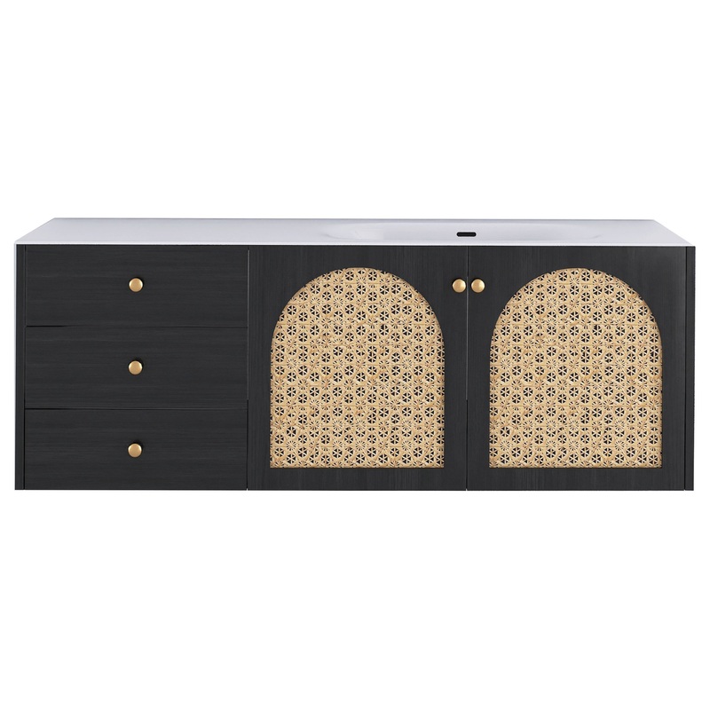 Create a sleek design with this wall-mounted bathroom vanity. Easy to clean the floor and easy to use the gap between the floor and cabinet. This seamless integration basin eliminates edges and joints, and there are fewer areas for dirt, grime, or water to accumulate. Creating a clean and visually appealing aesthetic in the bathroom. Our bathroom vanities have constructed high-quality and eco-friendly plywood made of solid wood. Good thickness of plywood makes the bathroom furniture base more durable. Realistic wood grains are not only natural-looking but also smooth surfaces. That fresh your day and night in your bathroom using this bathroom vanity. Scratch & Water-Resistant you do not concern with the bathroom’s wet environment because of the waterproof finish. Equipped with three drawers, ensure ample storage space. The drawer system features HDT full extension undermount drawer slides, which are sturdy and load-bearing, while giving you easy access to anything in the drawer. The soft close damping silent system for smooth and stable operation of the drawer, creating a warm and quiet environment for you.