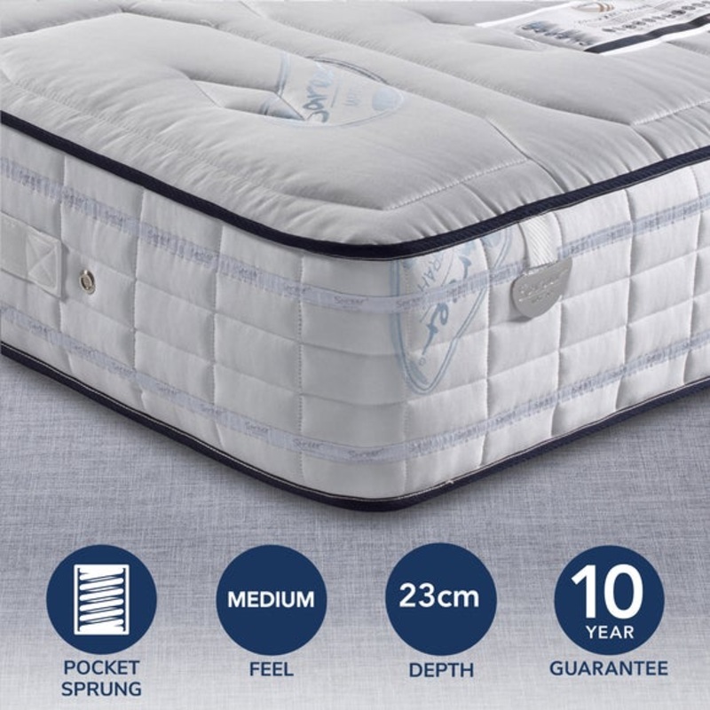 This gorgeous Sareer 2000 pocket spring mattress features an incredible memory foam layer which is designed to mould to your body, relieving unwanted pressure, aches and pains by spreading your weight across the mattress surface.