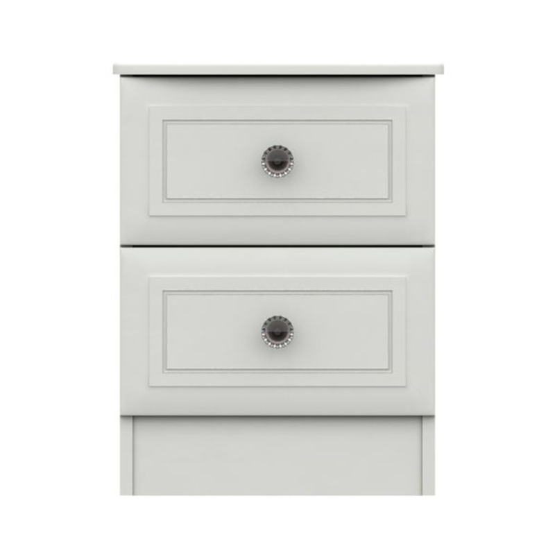 Finished in a choice of white and fired earth melamine finishes, the Portia 2 Drawer Bedside Table offers a stunning timeless design, perfect for enhancing any bedroom space. This stylish bedside unit offers a traditional styling, with its elegant bevelled edge profile drawer fronts with beautiful crystal look handles. Supplied fully assembled for convenience, the Portia comes with two spacious drawers, complete with 8mm heavy duty bases, linen look insides and easy glide metal runners.