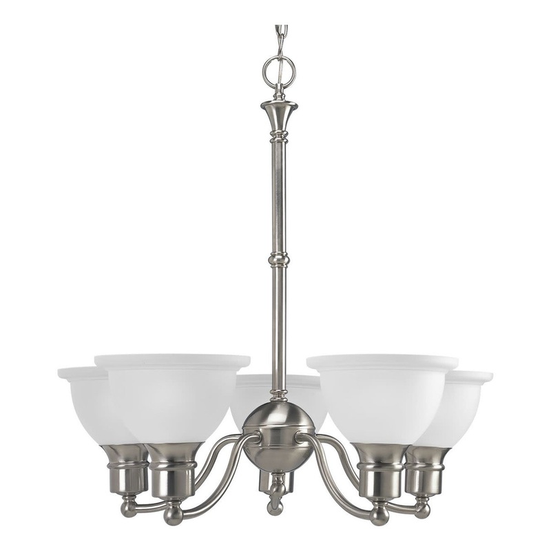 Product Features: -Finish: Brushed Nickel -Light Direction: Up / Down Lighting -Width: 24.75" -Height: 25.25" -Genre: Traditional -Bulb Type: Compact Fluorescent, Incandescent -Number of Bulbs: 5 -Number of Tiers: 1 -Fully covered under Progress Lighting w