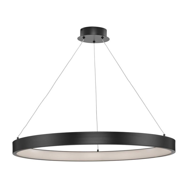 A simple halo is suspended by airy cables, bringing a minimal contemporary style to Inverse LED. Indirect illumination provided by integrated LED light sources creates an inner glow that gently lights the surroundings. Features Constructed from aluminum Integrated 38 watt LED lighting Capable of ELV/Reverse Phase dimming from 10-100% brightness Adjustable cord included Rated for damp locations Meets California Title 24 energy standards Covered under a 5 year limited manufacturer warranty Dimensions Fixture Height: 2-3/8″ Maximum Hanging Height: 100″ Width: 30″ Depth: 30″ Product Weight: 6.38 lbs Wire Length: 96″ Canopy Height: 1-1/2″ Canopy Width: 5-1/2″ Canopy Depth: 5-1/2″ Electrical Specifications Lumens: 2369 Color Temperature: 3000K Color Rendering Index: 90 CRI Wattage: 38 watts Average Hours: 50000