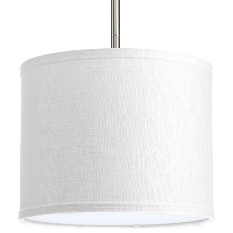 Created with mid-century designs in mind, the Markor collection adds a splash of vintage modern flair with a varied offering of fabrics, shade sizes, and pendant kits. Features: Linen drum shade provides a tasteful mid-century vintage look Designed to cast light in a downward direction Etched acrylic bottom diffuser included Pair with 1-light stems (P5198 or P5101) to make complete fixture Fully covered under Progress Lighting’s 1 year warranty Dimensions: Height: 8″ Width: 10″ (measured from furthest point left to furthest point right on fixture) Depth: 10″ Product Weight: 2 lbs