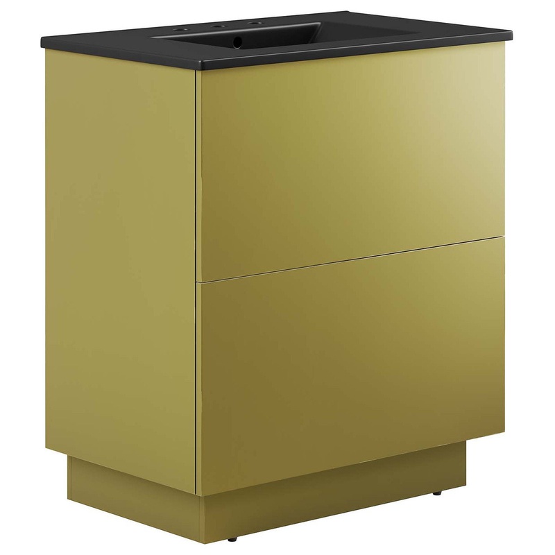 Experience a harmonious blend of luxury and practicality with the Quantum 30" Bathroom Vanity. This modern bathroom vanity features a sleek ceramic sink basin with 8" centerset holes and integrated countertop, awaiting your personalized fixture choices (no